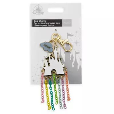 Bring a little bit of magic to your every day, with this lovely bag charm. Inspired by the iconic Disney Castle, it features multi-coloured rainbow chains and a smaller cloud charm with ‘Home’ wording.
