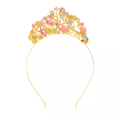 Attend the royal coronation of Princess Belle as she tops-off her ensemble with this bejeweled golden tiara. Golden and enameled rose filigree highlights the crowning glory of any Beauty and the Beast costume.