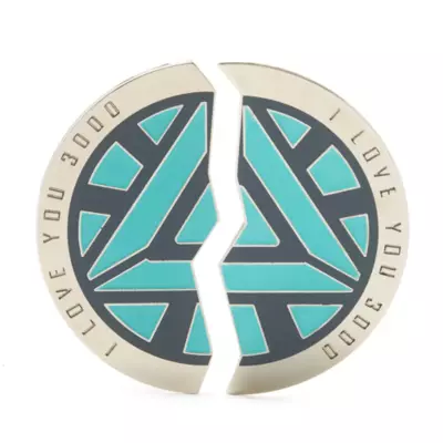 This epic pin set is sure to make a statement! Complete with ‘I love you 3000’ wording, both pins fit together to form Iron Man’s heart.