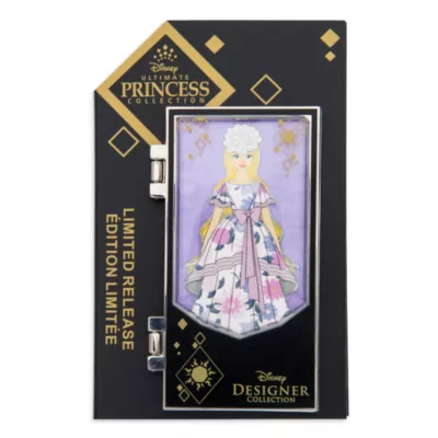 Designed by Disney artist Tetsunosuke Saiki, this stunning limited release Rapunzel pin features the Disney Princess rendered in a colourful palette, plus a clear hinged door design on the front.