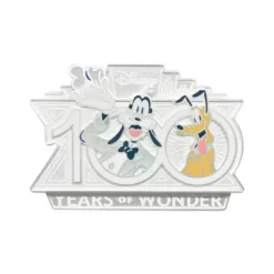 Goofy and Pluto are ready to party all year long on this characterful cloisonné pin celebrating Disney’s 100th anniversary.