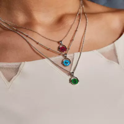 Show your allegiance to the Women of Marvel with this bold necklace set! The layered design features flippable pendants with logo artwork.