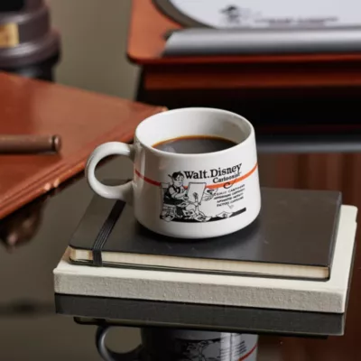 Workday mornings will get a boost of ‘stick-to-it-ivity’ when inspired by this ceramic coffee mug modelled after the hand-designed business card of ‘Walt Disney – Cartoonist,’ used in his Kansas City ‘Laugh-o-Grams’ days.